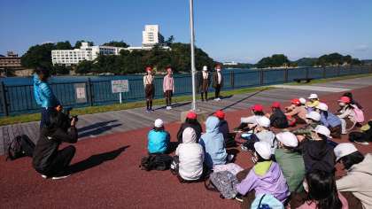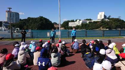 鳥羽マリンターミナルに到着し、自然体験の出発式を行いました。
