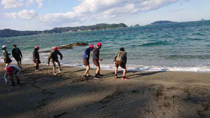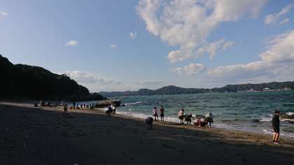 しろんご浜まで歩いてやってきました。きれいな海です。