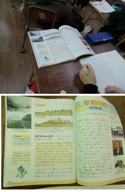 「改良工事のあとの淀川」を学習しました。これまで学習した淀川の改良工事の後も、人々は堤防を高く強くする取り組みをしてきたことを学びました。