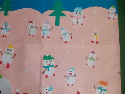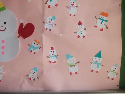 この掲示板に掲示できなかった雪だるま・雪うさぎは、階段の4年生の掲示板に掲示する予定です。