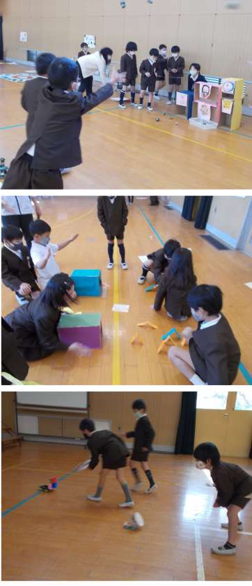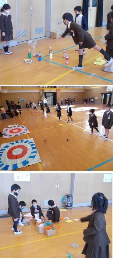 2年生が1年生を「おもちゃランド」に招待しました。2年生も1年生も朝から「おもちゃランド」を楽しみに登校してきたようです。2年生の児童は開始前からやる気一杯。12種類のコーナーがありましたが、どのコーナーでも1年生の楽しそうな姿が見られました。また、2年生は優しく教えて説明したり、コツを教えてあげたりと立派な姿が見られました。1年生が楽しく活動していることにとても喜んでいました。これまで、がんばって準備してきてよかったですね。
