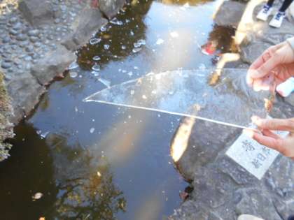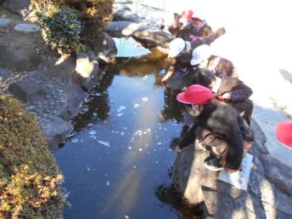 など、冬を見つけることができました。特に、池にはった氷を見つけた時には、驚くとともに大喜びの様子でした。