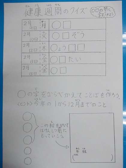 2月9日(月)〜13日(金)今年3回目の健康週間です。