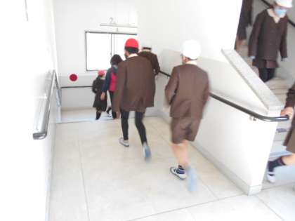 火災の発生を想定した避難訓練を行いました。「お…おさない」「は…はしらない」「し…しゃべらない」「も…もどらない」の「お・は・し・も」に気をつけて避難をしました。火災、地震など災害はいつ起こるかわかりません。そんな万が一に備えて、避難訓練を定期的に実施しています。今日の訓練では、静かに素早く行動することができました。