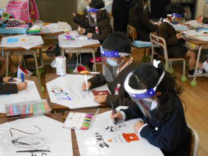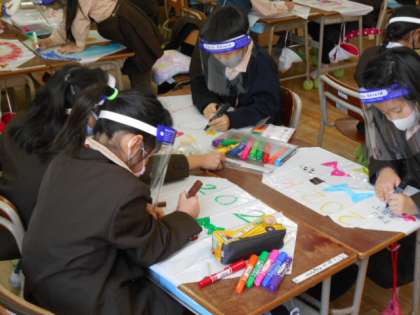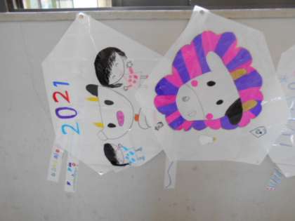 「ふゆを生かしてあそぼう」の学習でたこ作りに取り組んでいます。カラフルで素敵なたこができあがっています。外であげるのが楽しみですね。