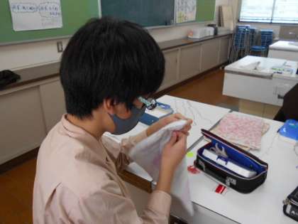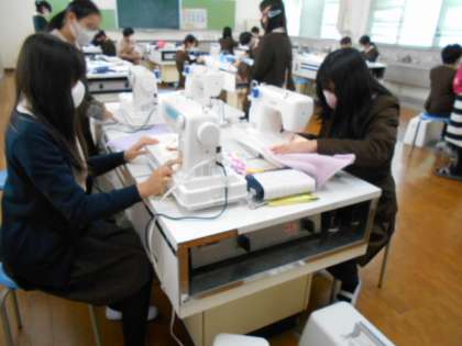 在校生に送るぞうきん作りに取り組んでいます。ミシンで縫ったり、手縫いで刺繍をしたりし、一つ一つは心をこめて丁寧に作っています。これまでは先輩たちにもらったぞうきんを使う立場でしたが、送る立場になります。これまでの小学校生活、在校生たちとの思い出を振り返る機会になっているようです。