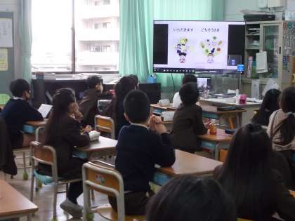 1月24日から30日の学校給食週間にちなんで、給食の歴史やおかずとごはんができるまでの様子、クイズなどを委員会の児童が発表しました。