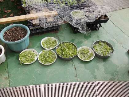ところが、それからヒヨドリや、ドバトが芽をついばんで食べたり抜いたり・・・