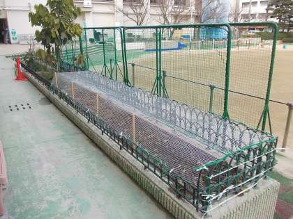 あまりにもひどいので、管理作業員さんにネットをはってもらいました。