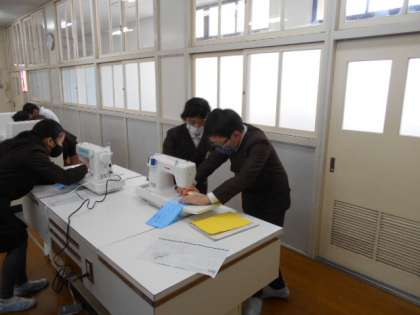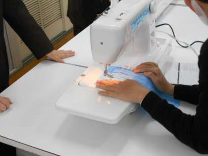 ミシンを使って縫う学習をしています。今日は空縫いから始め、練習布で縫う練習もしました。今後、ナップザック作りに取り組みます。
