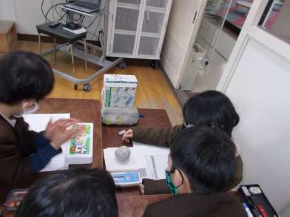 「ものの重さ」の学習で、「ものの形をかえたとき、重さは変わるのだろうか」を課題に学習に取り組みました。粘土の形を「丸い形」「平らな形」「細長い形」「細かく分ける」に変えて重さをはかり、もとの粘土の重さと比べました。予想と比べ、結果に驚きの声があがる場面も見られました。電子てんびんを使うのは初めてでしたが、正しく使い、きちんと重さをはかることができました。