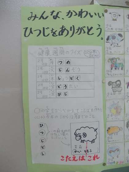 先週1週間の健康委員会のクイズのこたえは「ひつじどし」でした。