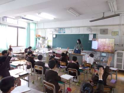 説明文「あなのやくわり」の学習をしています。50円玉、しょうゆさし、植木鉢、コンセントプラグなど、あなのあるものには、それぞれ役割があります。今日の学習では、身の回りにある「あなのやくわり」について考え、まとめた文を発表しました。身の回りにはたくさんあなのあいたものがあり、それぞれ役割があることがわかりました。