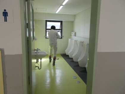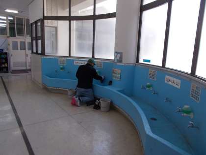 業者の方による、トイレ、低洗い場の清掃が行われました。これからもみんなが気持ちよく利用できるようにこころがけたいですね。