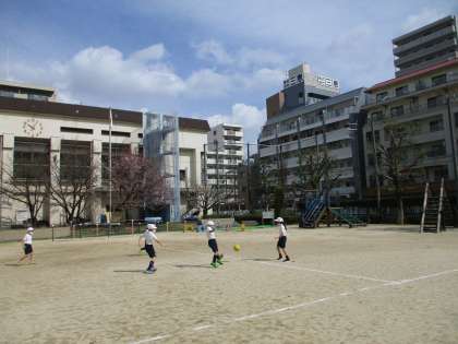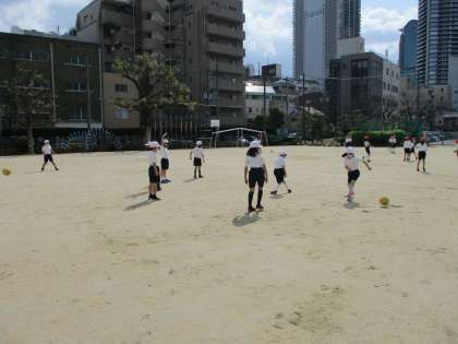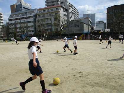 「ボールけりゲーム」に取り組んでいます。パスをつないでシュートすることをめあてに取り組んでいます。ボールをけったり、パスを足でとめたりすることがとても上手になりました。友だちと協力しながら取り組むことができています。