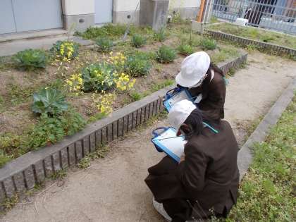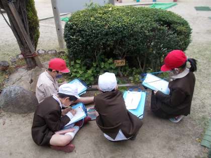 3年生は理科の単元「春の生き物をかんさつしよう」で、運動場や学習園に出て生き物の観察をしました。タンポポやスズメノエンドウなど花の咲いている草や、新芽の出ている樹木、チョウなどの昆虫を見つけては、一生懸命記録シートに記入していました。それぞれの春の様子、しっかり見つけたかな?
