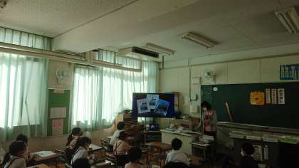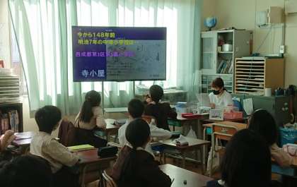学校の成り立ちや歴史、思い出などを、子どもたちは興味深く聞いていました。