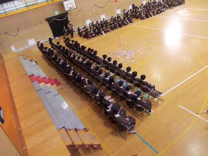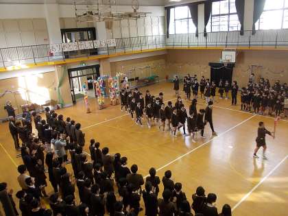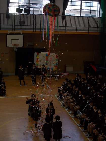 1年生から順番に、学年からの贈り物(歌や合奏)をしました。