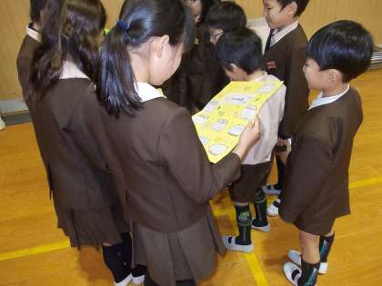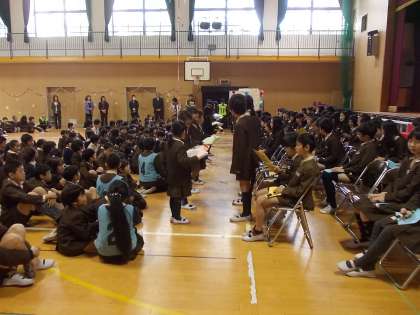 次に、たてわり班のメンバーと全員握手をし、メッセージを渡しました。どの子もうれしそうにメッセージを読んでいました。