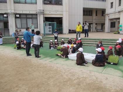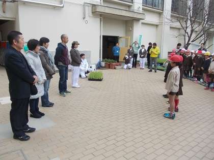 みんなで育てる花いっぱいまちづくりプロジェクト(菜の花)出荷式を行いました。中津地域活動協議会会長さんや、北梅田地区まちづくり協議会様、梅田ミツバチプロジェクト様に来ていただきました。