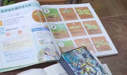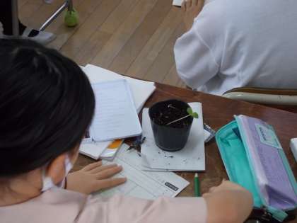 3年生は、以前に植えたホウセンカが発芽したので、その観察をしました。