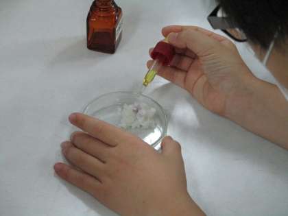 お米にヨウ素液をつけると、反応して青紫色に変化します。