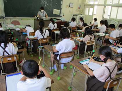 4年生は、国語科の時間に毛筆の練習をしました。