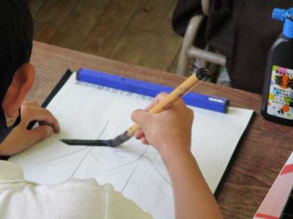 座る姿勢、筆の持ち方、運び方。