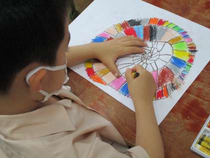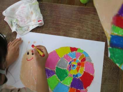 思い思いに好きなな色をぬりこんでいく子どもたち。すてきなカタツムリがたくさん出来上がりました。