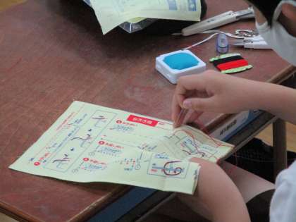 針に糸を通したり、玉結びを作ったり。悪戦苦闘しながらも、子どもたちは一生懸命取り組んでいました。