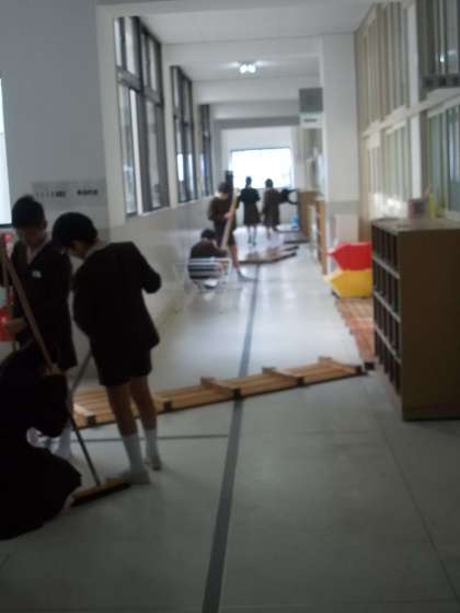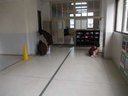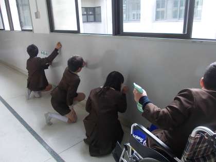 白い廊下の壁はメラミンスポンジで、磨きました。