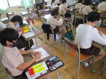 今日のスマイルスタディタイムから、漢字検定に向けての学習の取り組みが始まりました。配布されたドリルを使って、定められたところを学習しました。