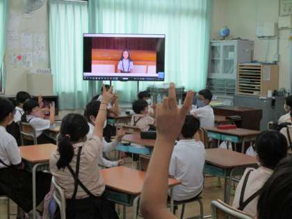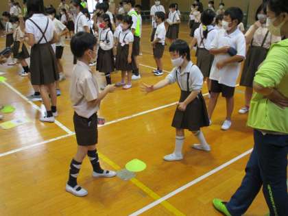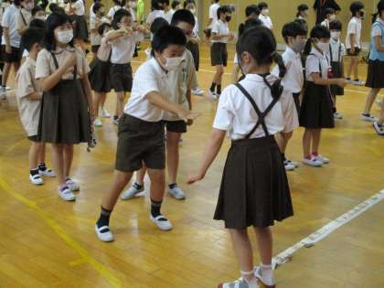 今日のなかよし集会は、講堂で活動する班と、教室で活動する班に分かれて実施しました。それぞれの班で、全学年の子どもたちが楽しく交流しながら活動することができました。
