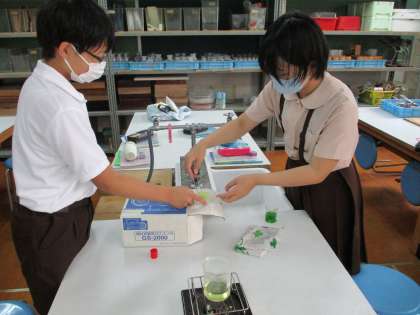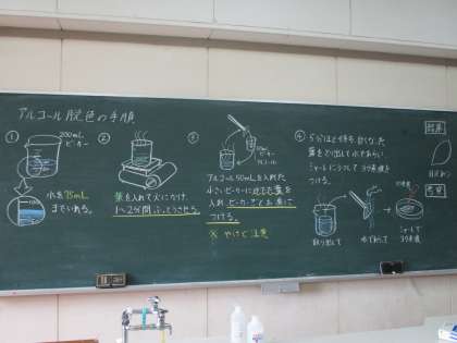 6年生が理科の時間に、植物の葉にでんぷんができるかを確かめる実験をしました。