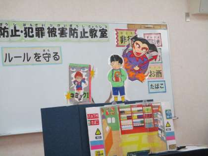「社会のルール・規則」を、万引きの場面のペープサートを中心に学習しました。