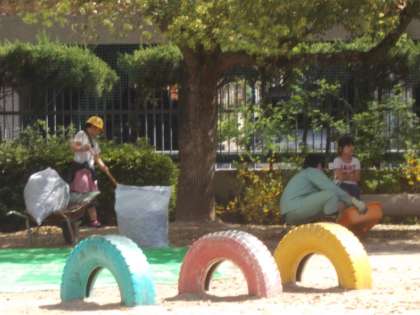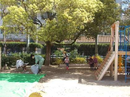 クスノキの葉が入れ替わっています。毎日毎日大量の葉っぱが降ってきます。子どもも手伝ってくれています。