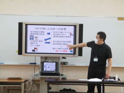 本日は、安全衛生委員会「腰痛予防講座」がありました。講師は、大阪行岡医療専門学校長柄校の名倉先生です。肩こりや腰痛の原因や予防について教えていただき、猫背チェックや肩こり予防体操などを行いました。講座を終えて、体がすっきり軽くなったように思います。元気に過ごせるよう、普段の姿勢を見直して適度な運動をすることは大事ですね。