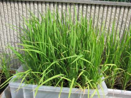 そこで、住吉区の依羅小学校から苗をわけてもらって再挑戦していました。植え付けが遅れて、無事に育つか心配していたのですが、元気に育ってくれています。そろそろ穂がでて花が咲くころなのですが。。。。