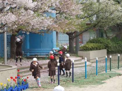 この2,3日の雨で、桜の花がすっかり散ってしまいました。ピンクの絨毯です。
