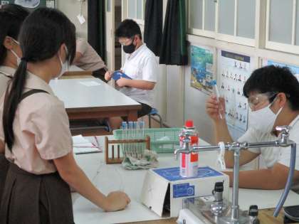 6年生が、理科の時間で「水溶液のちがい」の実験をしました。