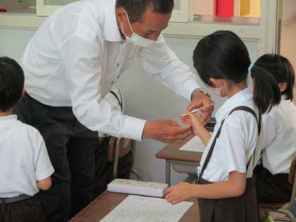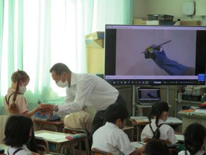 今日は、1・2年生が今年度2回目となる「正しい鉛筆の持ちかた教室」がありました。