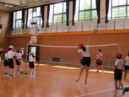 6年生は、体育の授業でバレーボールに取り組んでいます。