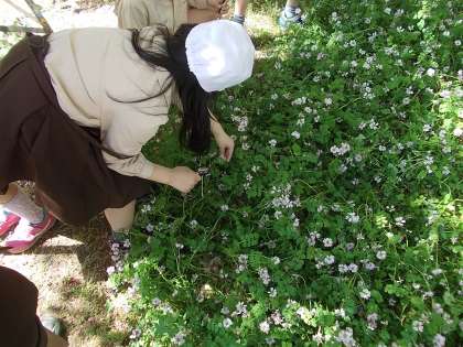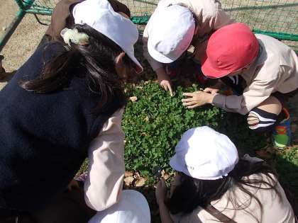 観察の仕方や虫メガネの使い方を学習し、学校の生き物を観察しました。