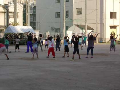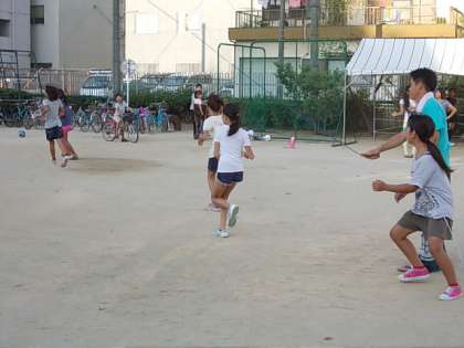 昨日から夏休みラジオ体操が始まりました。今日は子ども66人、大人28人の参加がありました。ラジオ体操のあとは、縄跳びをしたり、ドッジボールを楽しんだりしました。あと残り、1週間で夏休みも終わりです。そろそろ、早起きの習慣をもどしていきましょう。