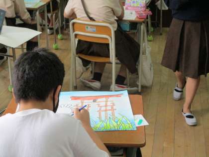 6年生は、今図工の時間に「世界遺産」の絵を描いています。