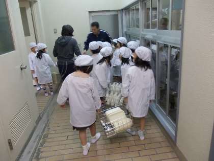 1年 はじめての給食当番