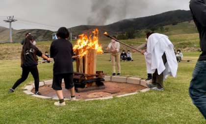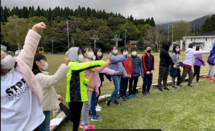 プログラムを入れ替え、この時間にキャンプファイヤーをしています。気温はぐんぐん下がってきましたが、子どもたちの気持ちはぐんぐん上がってきました。元気いっぱい楽しんでいます。