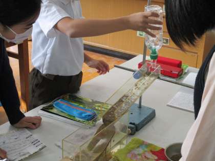 地層ができるのに、水の力が関係するのかどうかを確かめました。