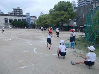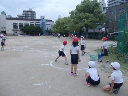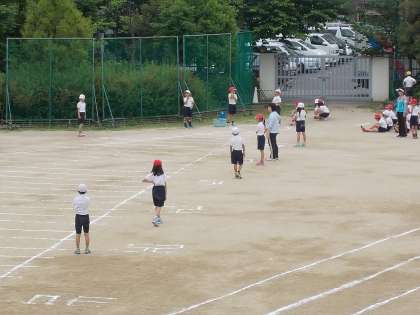 雨が心配されたので、1時間目に4年、2時間目に3年がしました。次に5年生が、というところで雨が降ってきたので、5年6年ができませんでした。後日に延期です。
