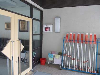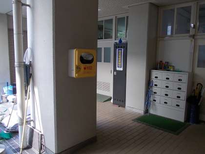 AEDは、機器が自動的に解析を行い、必要に応じて電気ショックを与え、心臓の働きを戻すことを試みる医療機器です。本校には2台あります。1台は竹馬の横です。もう1台は、玄関入ってすぐ右にあります。使うことがないことを望みますが、もしものときの為に、お知りおきください。